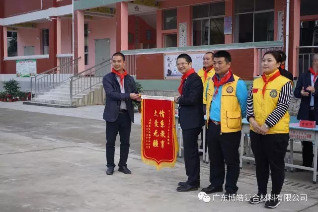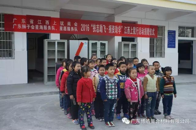 捐贈儀式上,廣東江西上猶商會會長、廣東博皓復(fù)合材料有限公司董事長賴厚平先生向陡水中心小學(xué)、平富中心校和營前鎮(zhèn)石溪小學(xué)等學(xué)校贈送了課桌、學(xué)習(xí)用品、電腦設(shè)備等教育教學(xué)物資及助學(xué)金,在講話中,賴厚平先生勉勵同學(xué)們勤奮學(xué)習(xí)、自強不息,把暫時的艱苦作為成長生活中的磨煉和精神財富的積累,把感激之情化為成才之志,發(fā)奮之源,用優(yōu)異的成績回報社會。