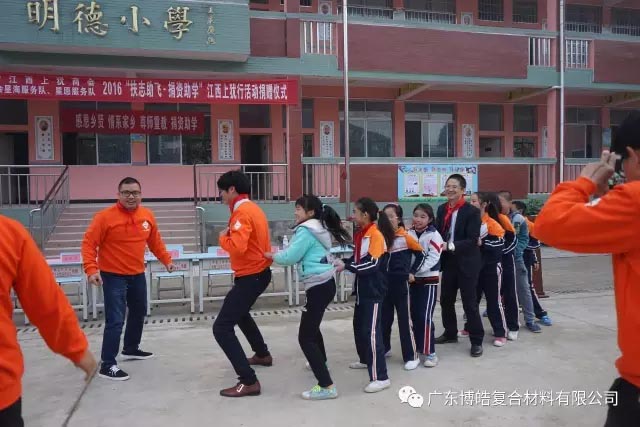 2016年12月8日-9日,有著廣東江西上猶商會會長、廣東博皓復(fù)合材料有限公司董事長雙重身份的賴厚平先生帶領(lǐng)商會成員等一行人來到江西上猶縣開展為期二天的“扶志助飛、捐資助學(xué)”捐資助學(xué)活動,為偏遠(yuǎn)貧困山區(qū)小學(xué)的師生們送去助學(xué)金和課桌、學(xué)習(xí)用品、電腦設(shè)備等一大批教育教學(xué)物資,用行動助力地方教育工作。